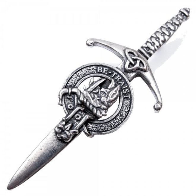 Crafted in Scotland from the finest pewter, this kilt pin showcases an antique palladium finish, making it a stylish addition to your Scottish attire. With more than 200 clan crests available, you can proudly display your heritage or a significant connection to your family's roots.