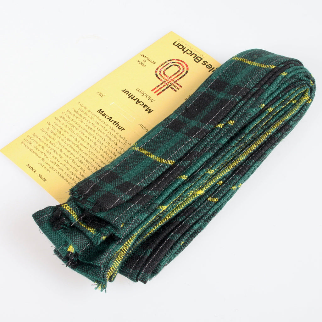 Made to order, our Wool Strip Ribbon in MacArthur Modern Tartan is an invaluable accessory for weddings or any occasion. With its fine weight wool, versatile length, and wide range of tartan patterns, this ribbon is sure to enhance the beauty of any event. So why settle for ordinary ribbon when you can have a touch of Scottish heritage?